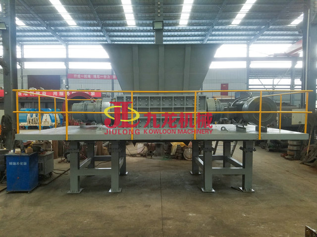 該設(shè)備是由兩組動(dòng)刀組合而成。每一組由數(shù)個(gè)到數(shù)十個(gè)數(shù)量不等的動(dòng)刀,通過(guò)一個(gè)回轉(zhuǎn)軸串裝而成,兩個(gè)回轉(zhuǎn)軸受驅(qū)動(dòng)裝置作用,按相應(yīng)速度正向或逆向回轉(zhuǎn)運(yùn)動(dòng),投入的物料,借運(yùn)行的動(dòng)刀刃間的剪刀力作用破碎。